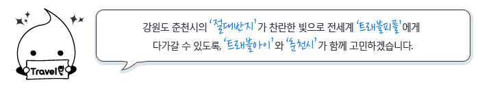 춘천이라는 이름이 가지는 뜻처럼 도시 곳곳에 따사로움과 희망이 느껴지는 평화의 도시이다. 춘천을 찾았던 수 많은 방문객은 어쩌면 춘천의 이러한 서정적인 아름다움을 찾아서 오는지도 모른다. 수려한 자연경관과 함께 40여 년간 자연재해가 없는 축복 받은 땅이기도 하다.