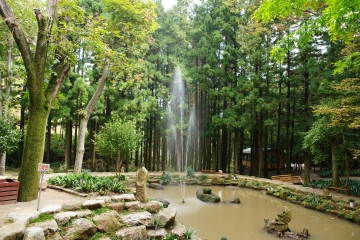 대한다원 안에 만들어진 분수광장. 대한다원 안에는 중간중간 다리를 쉴 수 있는 여러 장소들이 있다.
