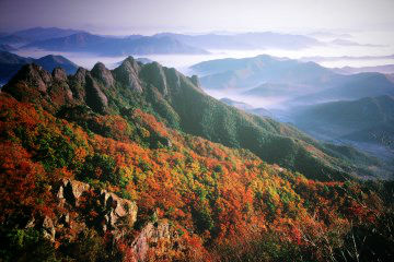 진안의 대표 명소 마이산의 가을 풍경. 마이산은 사계절 아름다운 명산으로 유명하다.2