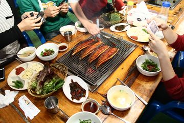 조금씩 익어가는 장어를 보는 이들의 입에선 군침이 가득하다.