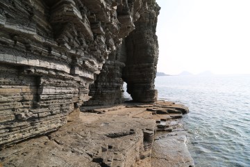 • 상족암군립공원의 해식절벽들은 파도가 실어온 유실물에 의해 만들어진 것이다.