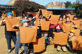 영전황토마을은 황토 염색 뿐만 아니라 떡메치기, 고구마캐기 등의 다양한 체험 기회를 제공한다.