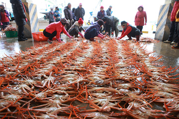 대게는 배에서 내려지는 즉시 경매에 부쳐진다.