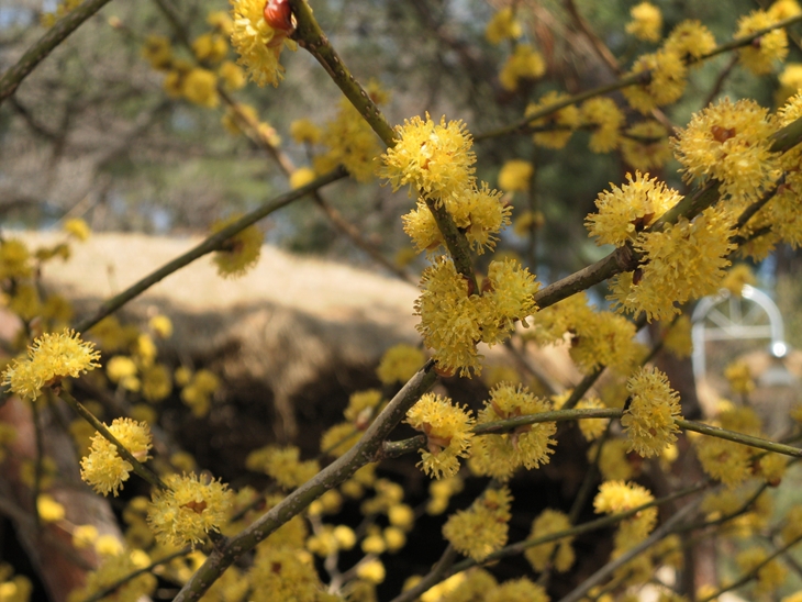 강원도에서는 산수유 꽃처럼 생긴 이 노란 생강나무 꽃을 '동백'이라고 부른다.