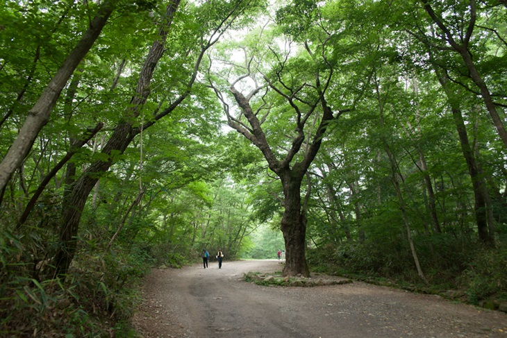 선암사 주차장에서 입구까지 이어지는 1.5km 숲길이 오감을 자극한다.