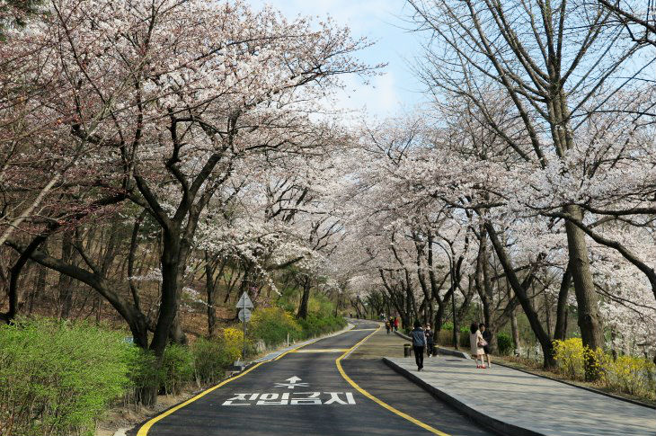 이처럼 시작은 비록 아픈 역사에 의한 것이었지만, 한철 화사하게 피었다 지는 남산의 벚꽃은 이제 서울 시민들에게 아픔보다는 즐거움을 선사하고 있는 듯하다. 다른 벚꽃 명소처럼 축제를 개최하지는 않지만, 봄나들이를 나온 사람들로 북적여 활기찬 느낌이다. 벚꽃과 개나리, 그리고 진달래가 한데 어우러져 있는 ‘남측 순환산책로’는 남산의 봄을 만끽하기에 더없이 좋은 길이다.