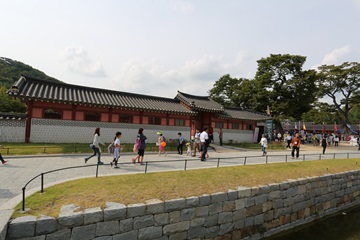 정조가 머무르던 처소인 화성행궁 정문, 이곳에서 팔달문시장으로 벽화이야기가 이어진다.2