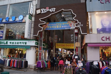 오랜 역사를 자랑하는 지동시장은 수원 화성을 연상케하는 입구가 인상적이다.2