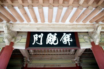 천년고찰 도갑사의 일주문 전경(좌)과 해탈문 현판(우).
