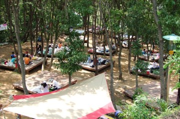 당일 오후 1시부터 익일 오후 1시까지 이용할 수 있는 야영데크. 주차장에서 가깝다.2